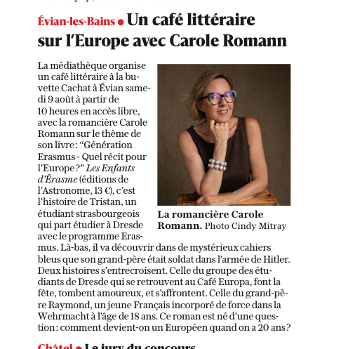 Carole Romann présente son roman Les Enfants d’Érasme et propose le thème Génération Erasmus – Quel récit pour l’Europe ? aux organisateurs de Cafés littéraires et Conférences. Contactez-nous.